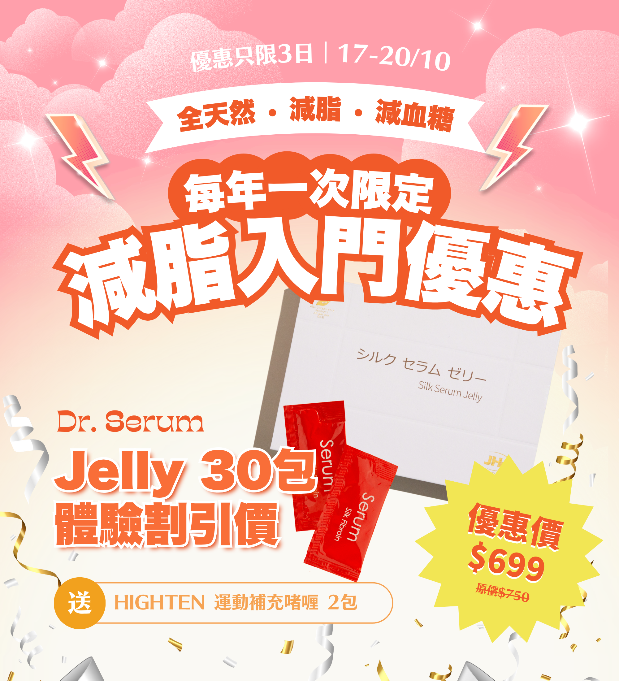 蠶絲蛋白啫喱主要功效包括:減脂、降膽固醇、穩定三高(高血壓、血糖、血脂),並幫助改善代謝。特別適合三高人士、內臟脂肪偏高、水腫體質、代謝慢或過重人士,以及想自然瘦身、不想依賴藥物的人士。