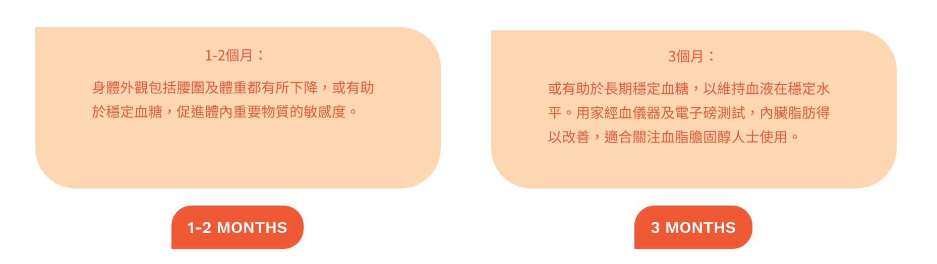 用家經血儀器及電子磅測試,內臟脂肪得以改善,適合關注血脂膽固醇人士使用。