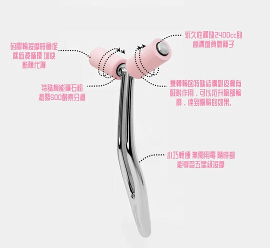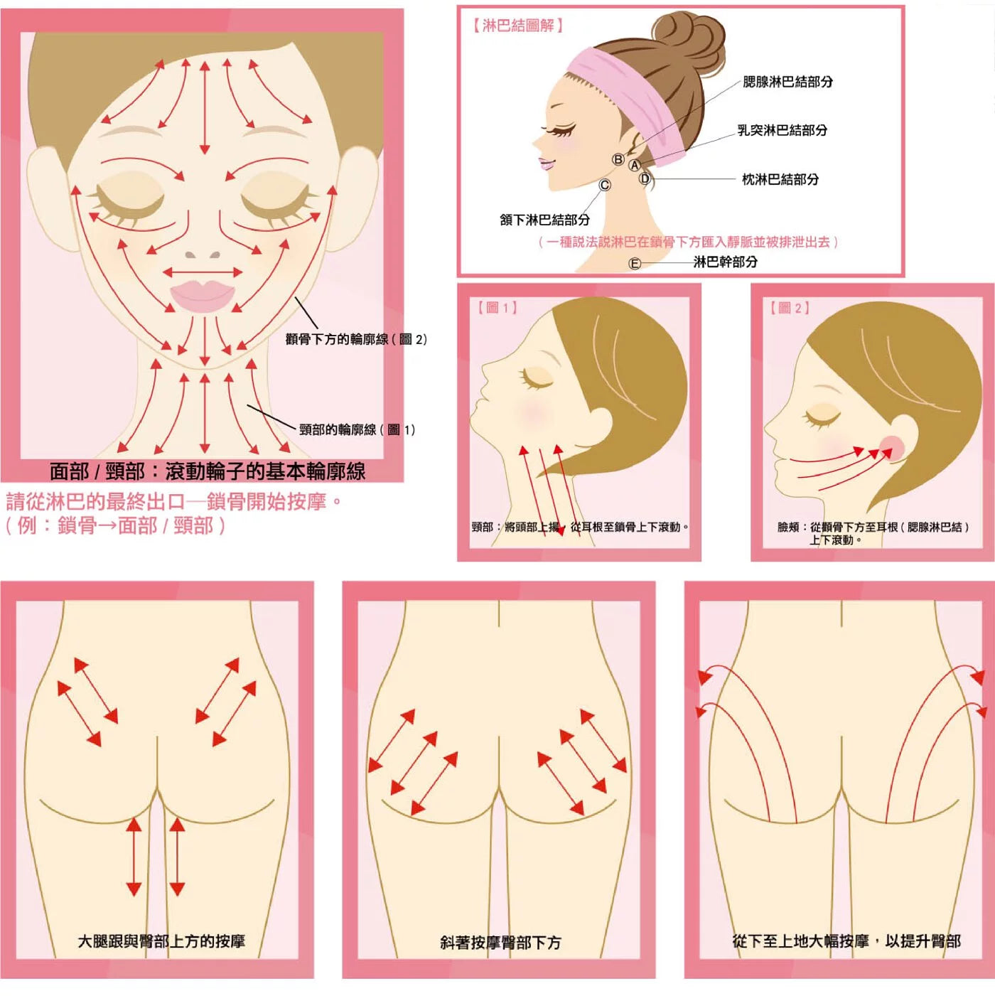 請握住手柄輕輕上下滾動,向上可以收緊皮膚,