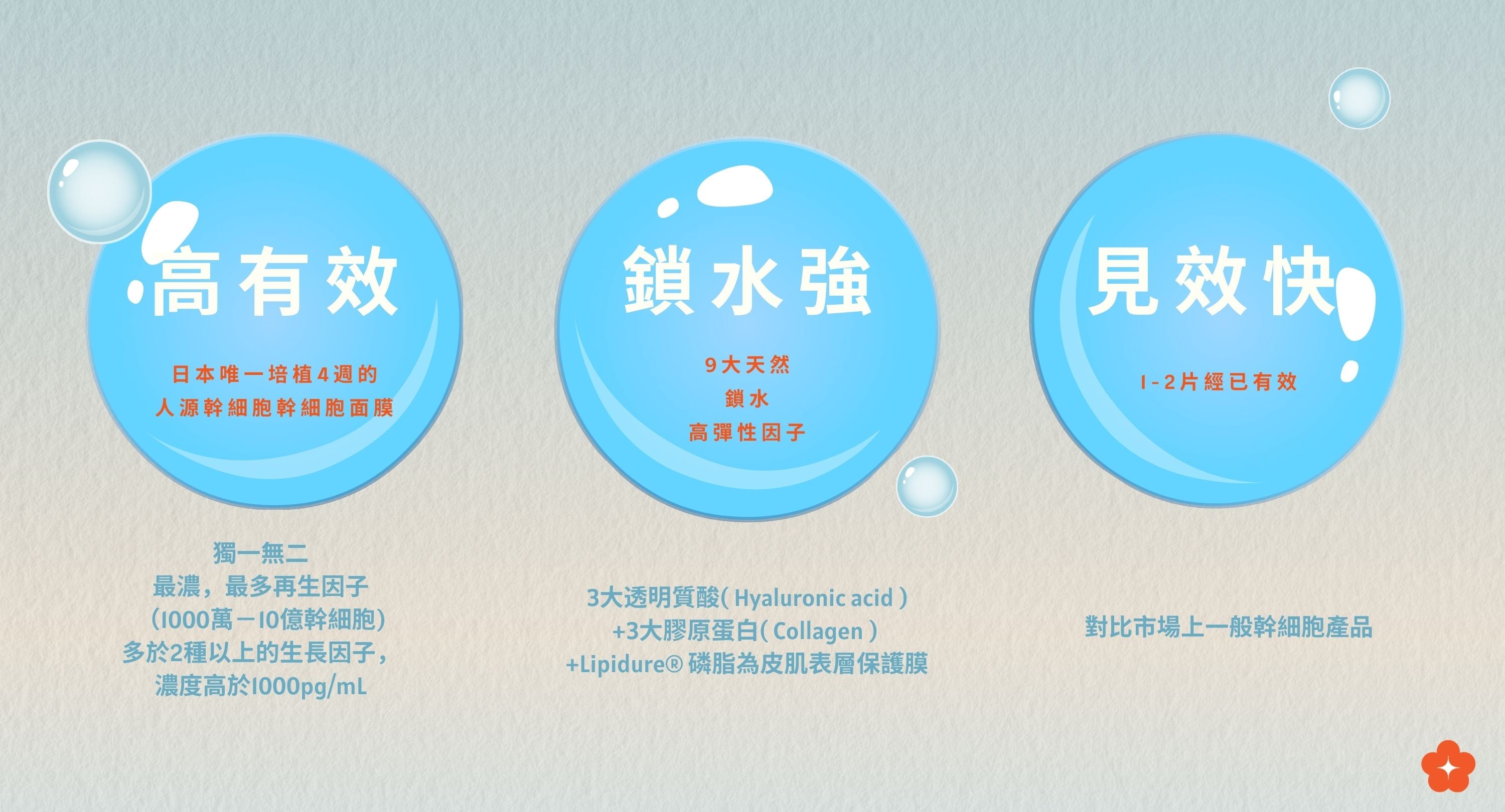 人體脂肪細胞順化液培養液對抗生長因子(促進皮膚再生,角質形成)。精華養分,讓肌膚恢復覆水潤彈性,減少皺紋。人體親和性最強,不引起過敏反應,相比動物及植物源幹細胞效果。