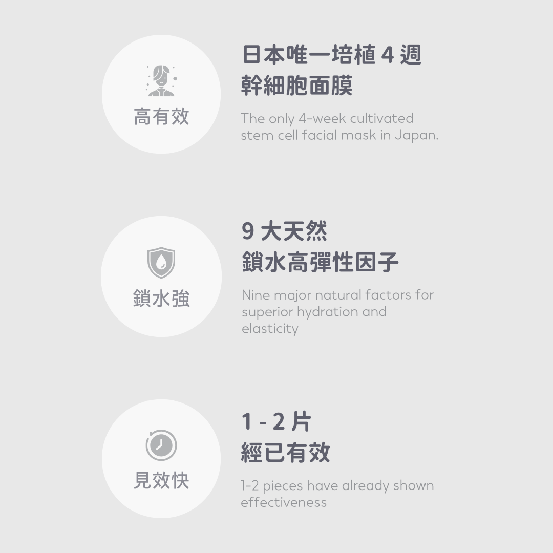 每片面膜約含28ml美容精華,能深層滋潤肌膚,賦予透明感。