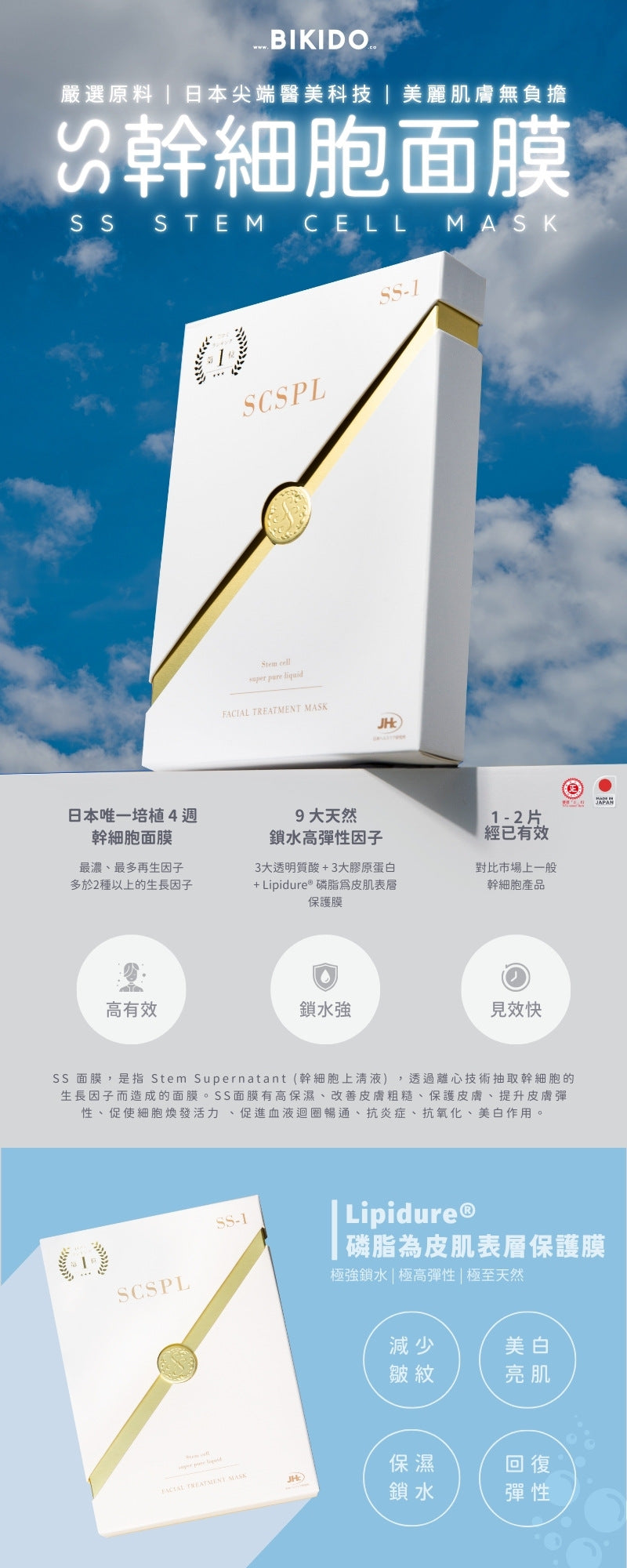 SS1幹細胞面膜是由「人體乾脂肪細胞培養液萃取物」、「透明膠原蛋白」、「透明玻尿酸」和「胎盤素」等美容成分組成的面膜。